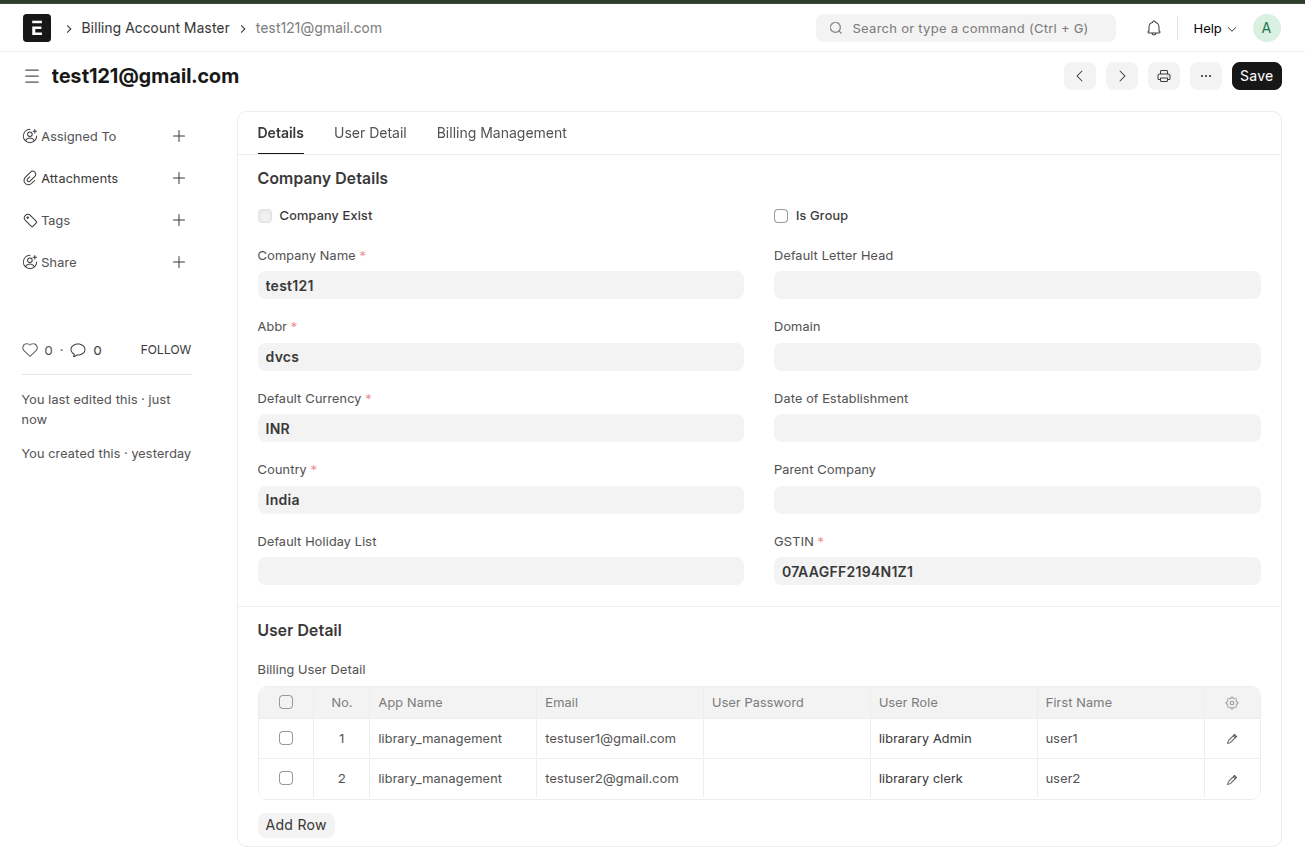 Admin can add the users inside the billing user details by adding email, password and give the role.