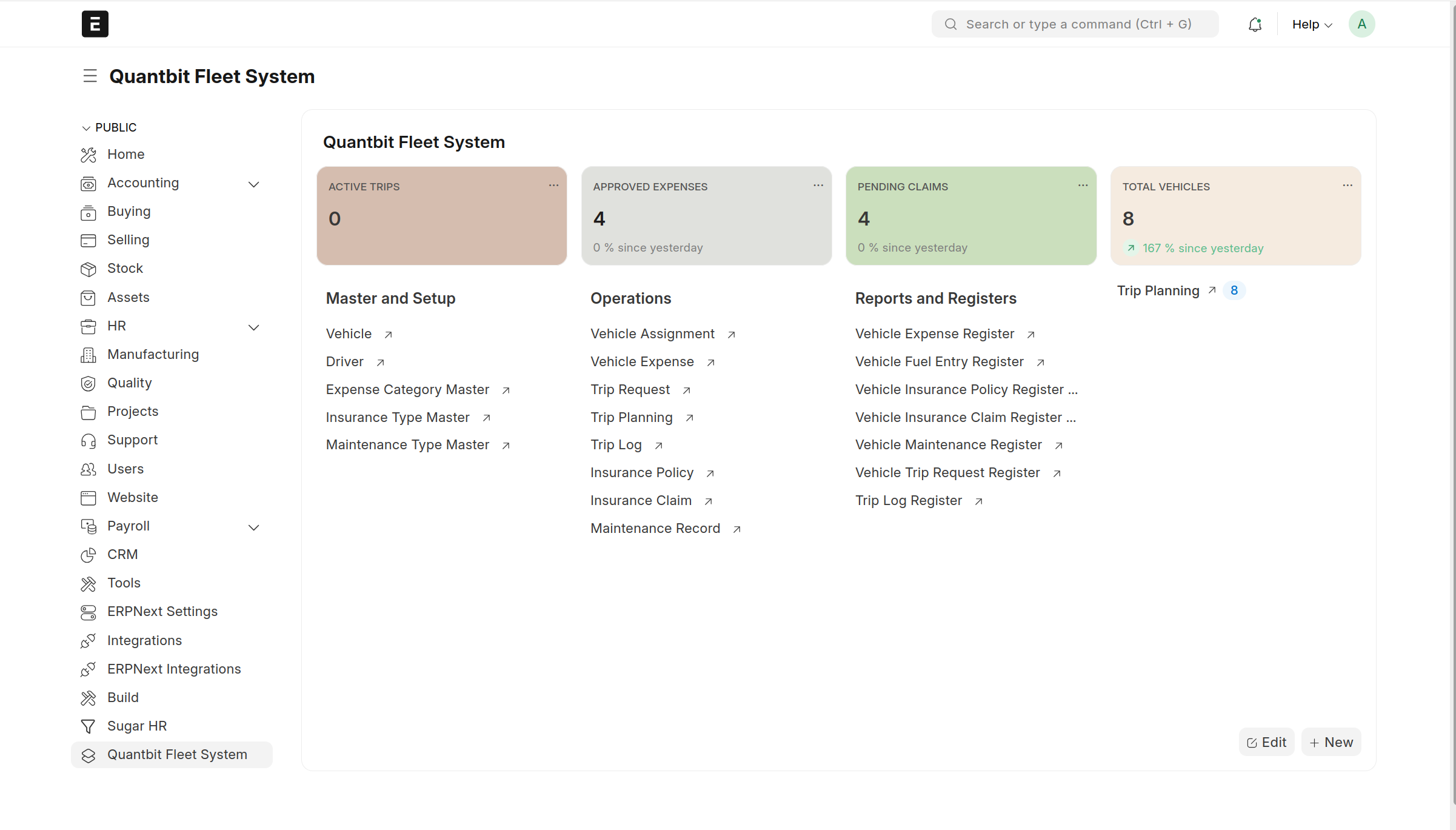 The dashboard provides a quick overview of fleet activities.